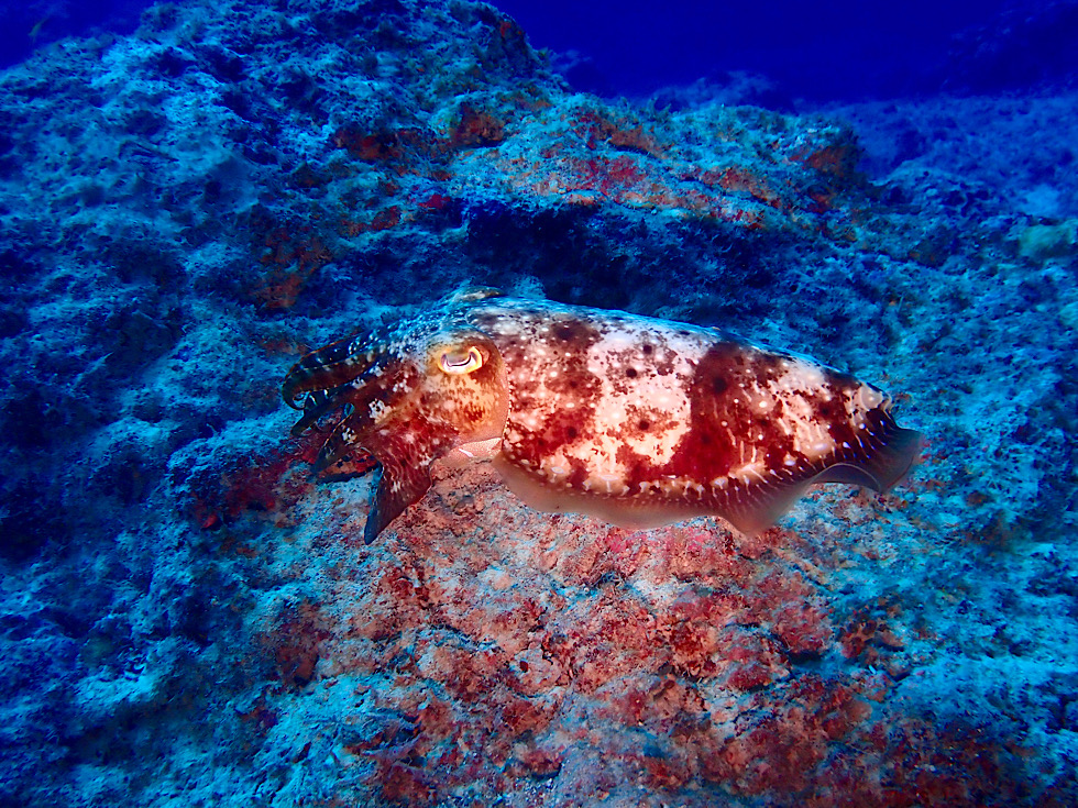 池の中に迷い込んだコブシメが、、、